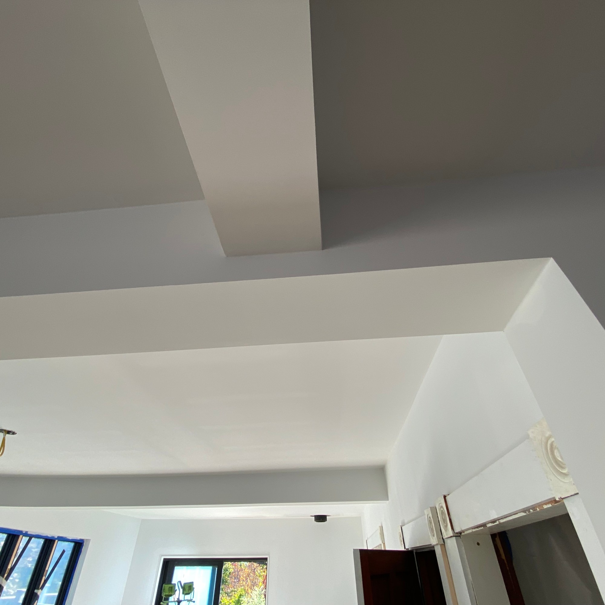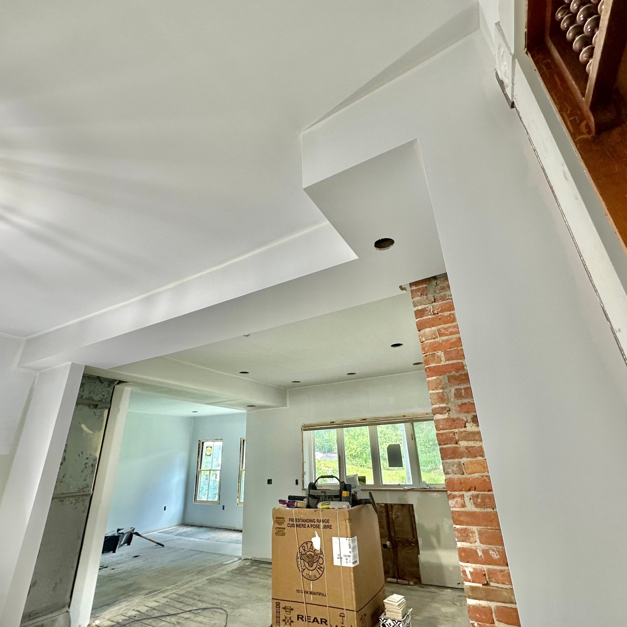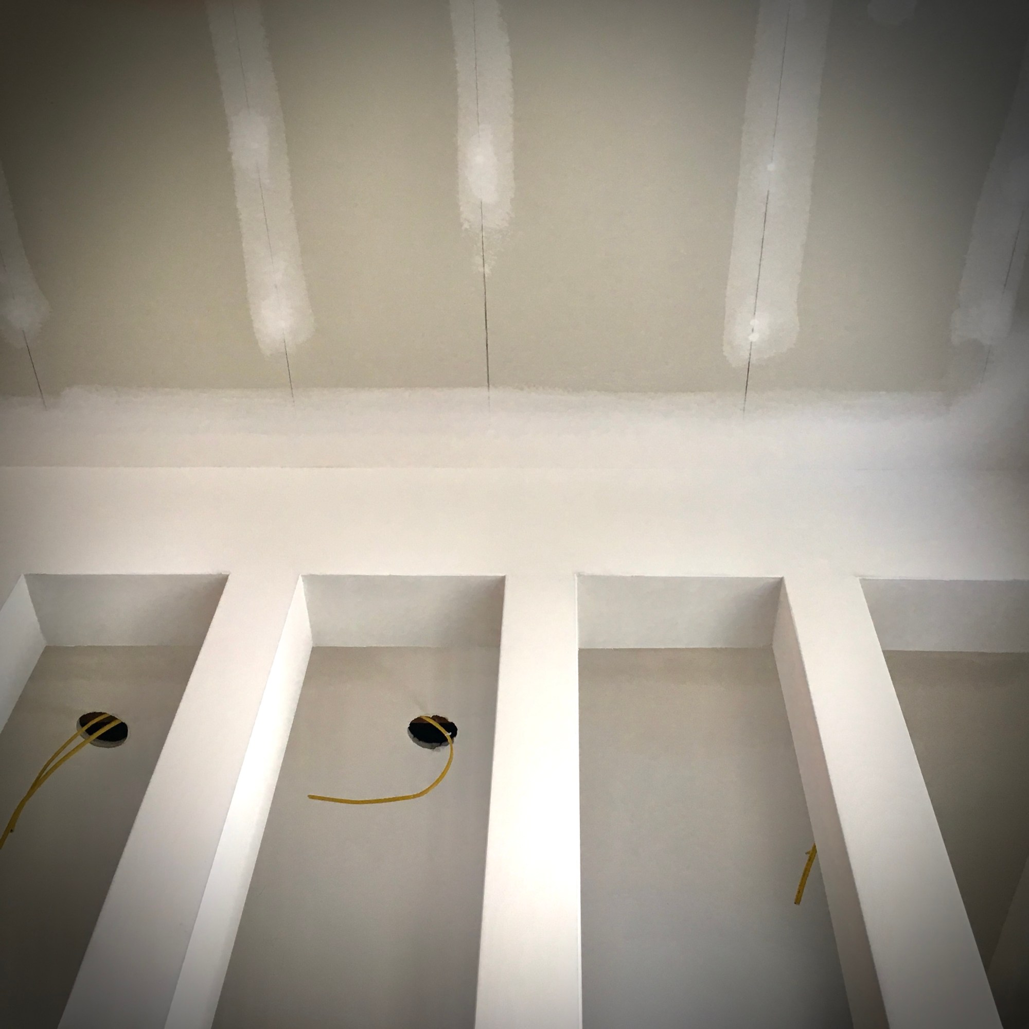Making sheetrock lines meet in sharp intentional ways takes time and careful intention, the result is a pleasing and gratifying space.