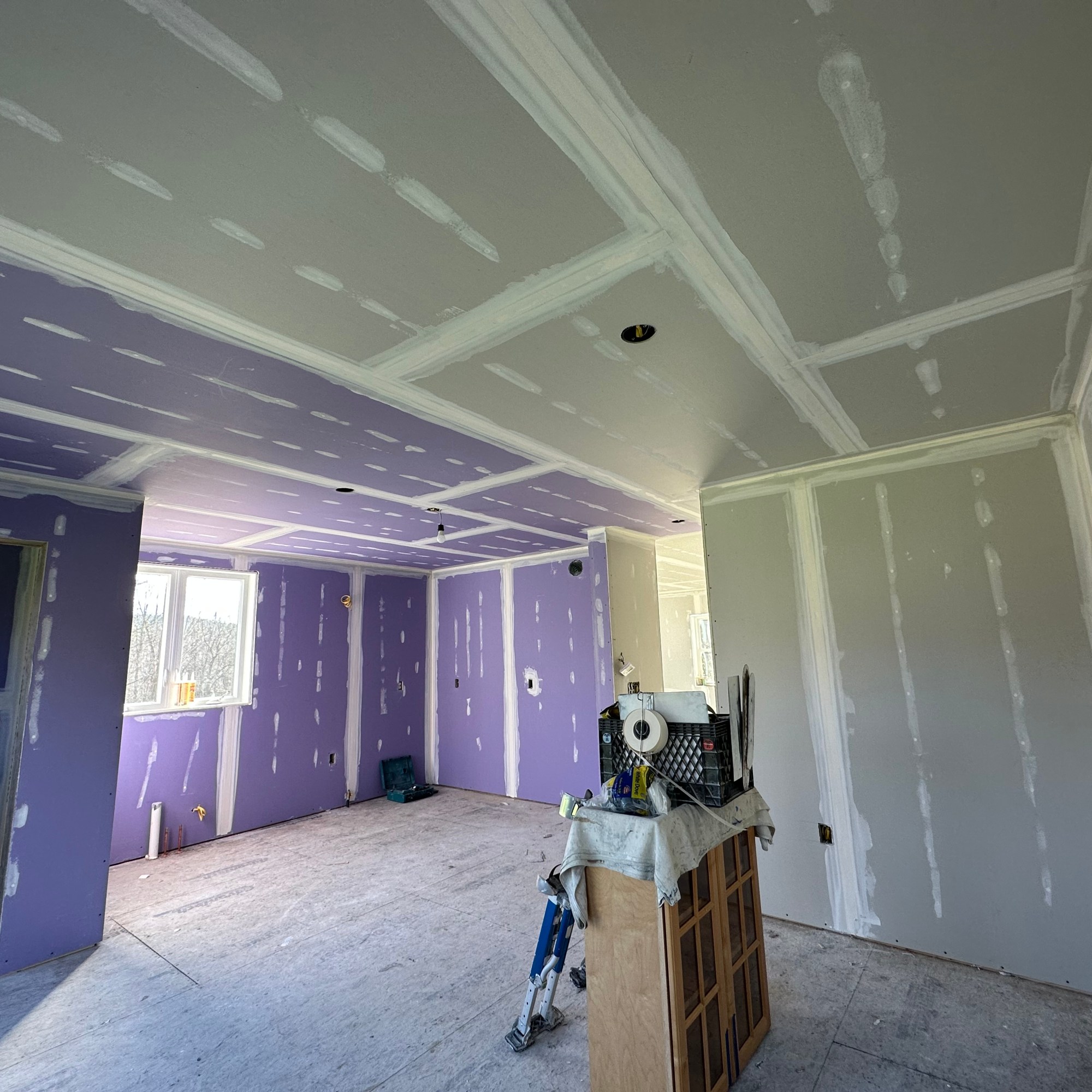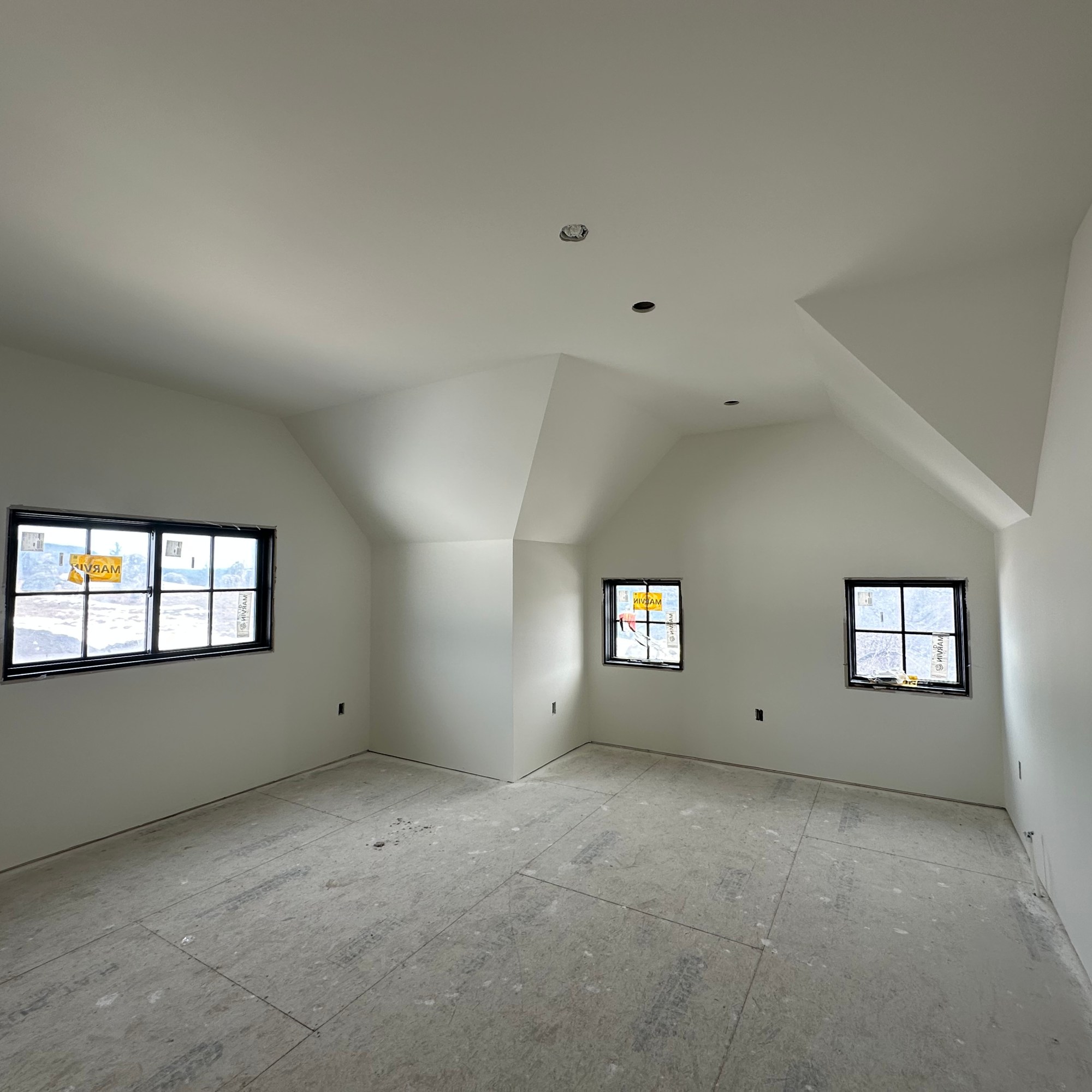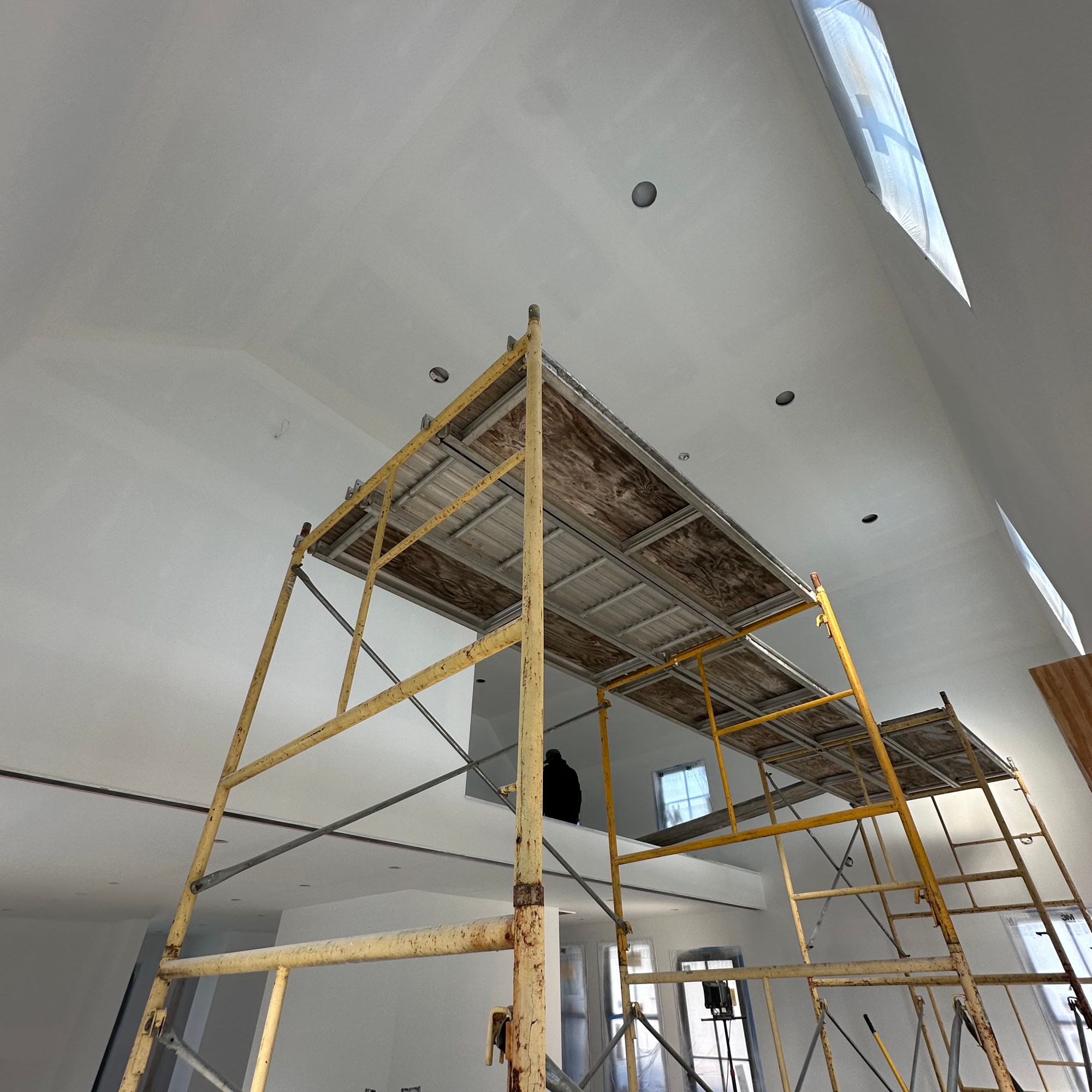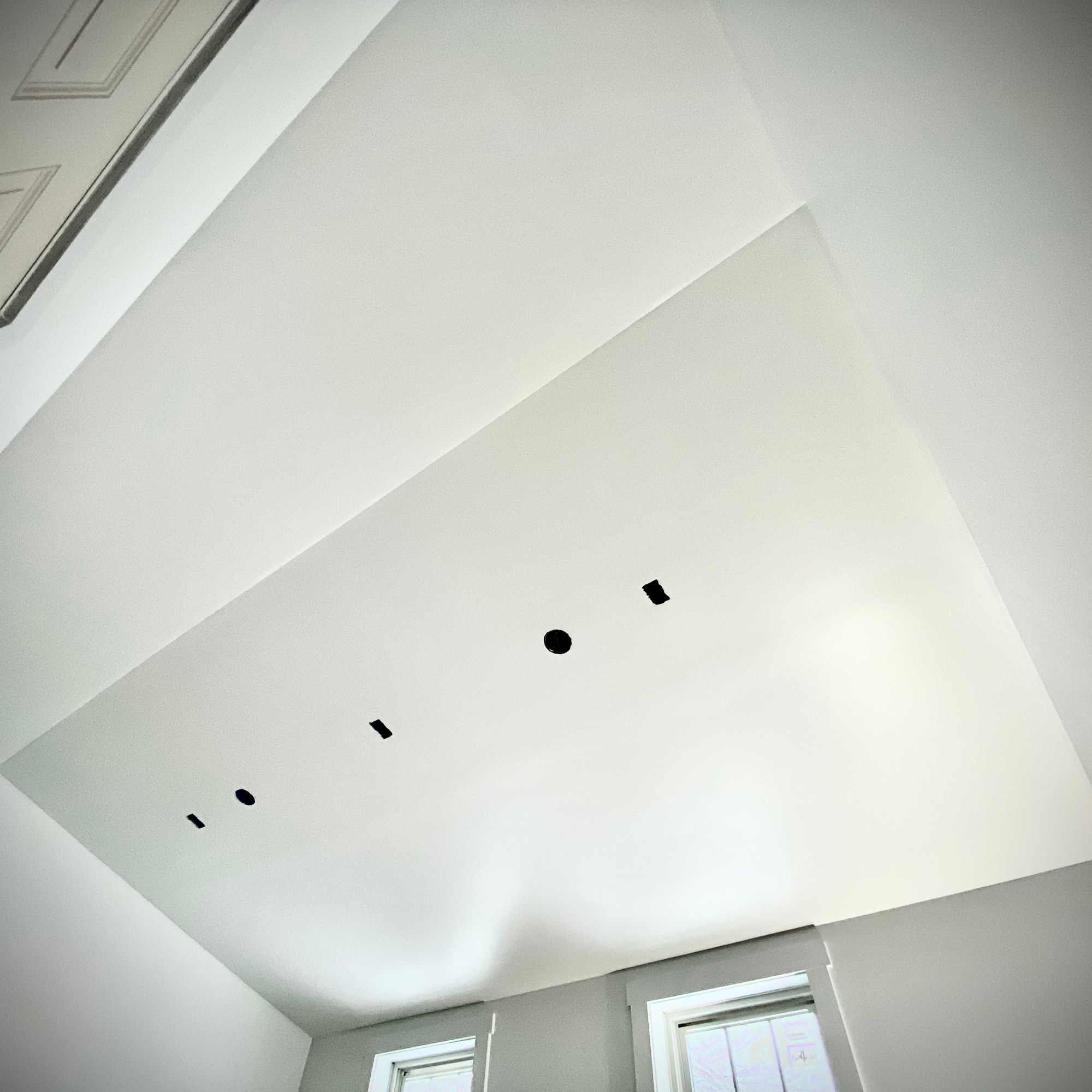 Making sheetrock lines meet in sharp intentional ways takes time and careful intention, the result is a pleasing and gratifying space.