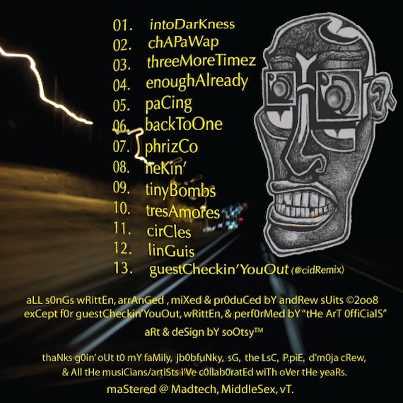 -1st solo attempt at music production. Recording under the alias @cid, the album explores trip hop, drum ‘n’ bass, and ambient textures. Featuring obscure vocal samples from government PSA’s, nature sounds and movies, the album is an experimental voyage to say the least.