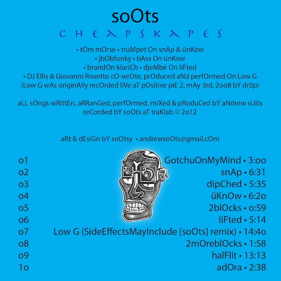 -Cheapskapes builds on the works from previous 2 albums with help of some old friends and some new ones. Electronic in nature, live drum sounds are blended with samples and loops to generate a mix of upbeat and downbeat grooves.
